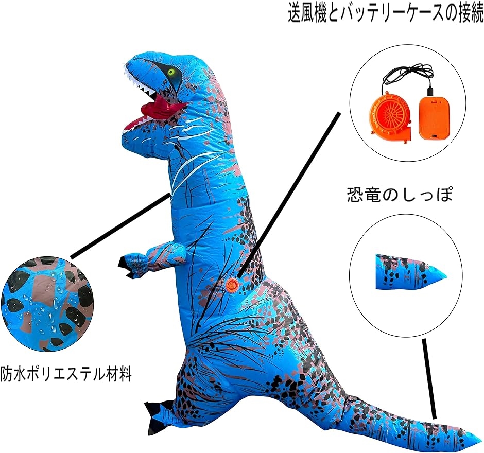| 商品名 | 恐竜 きぐるみ ティラノサウルス インフレータブルコスプレ用着ぐるみ 4点セット 男女兼用 大人用 ブルー |