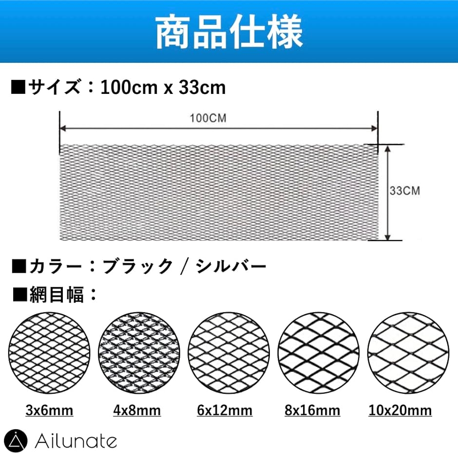 | 商品名 | 車 フロントグリル メッシュ 網 アルミ ネット 自動車用 バンパー グリルカバー 100cmx33cm |