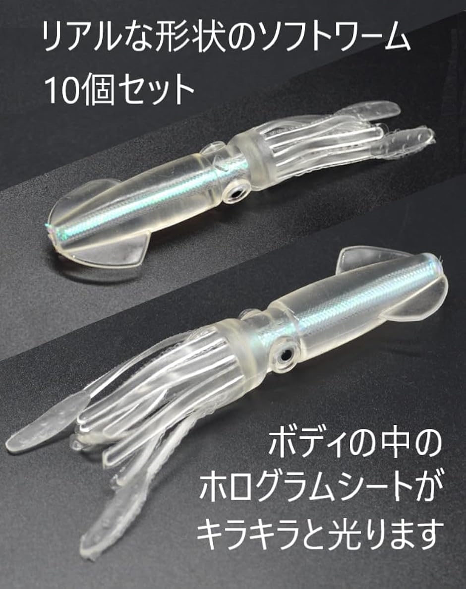 | 商品名 | イカ型ソフトワーム イカワーム 10個 釣りイカルアー ホタルイカ 半透明 大物狙い 10個セット |