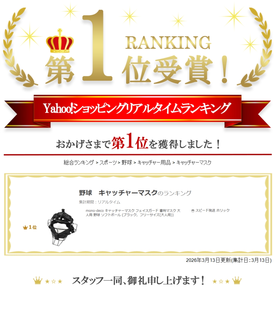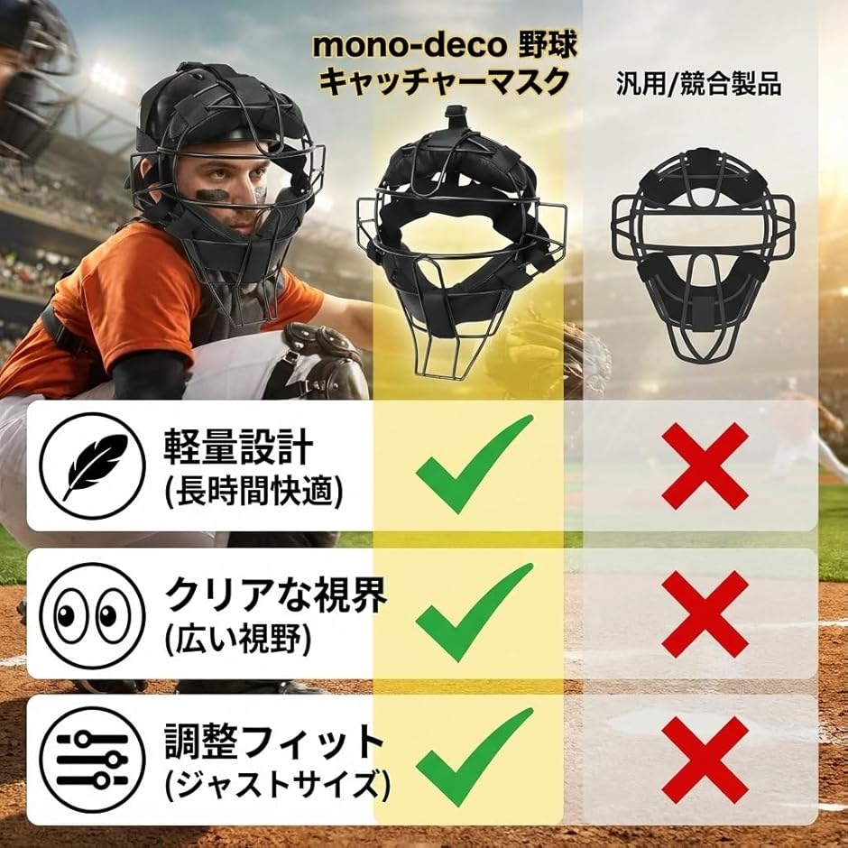 | 商品名 | mono-deco キャッチャーマスク フェイスガード 審判マスク 大人用 野球 ソフトボール 軽量 視界クリア |