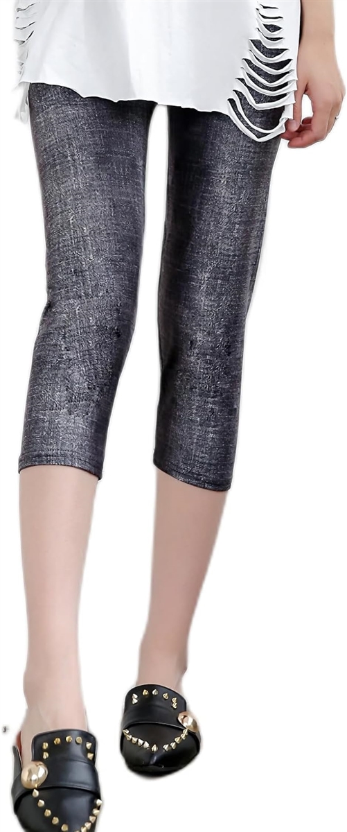 | 商品名 | レギンス 7分丈 膝丈 レディース パンツ 薄手 通気性 伸縮性 美脚 フリーサイズ FA379 黒灰色 デニム柄 |