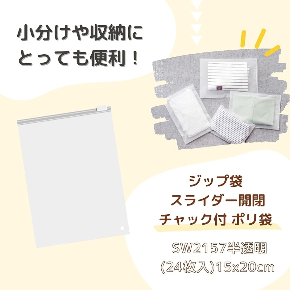 | 商品名 | ジップ袋 スライダー開閉 チャック付 ポリ袋 SW2157半透明 24枚入15x20cm |