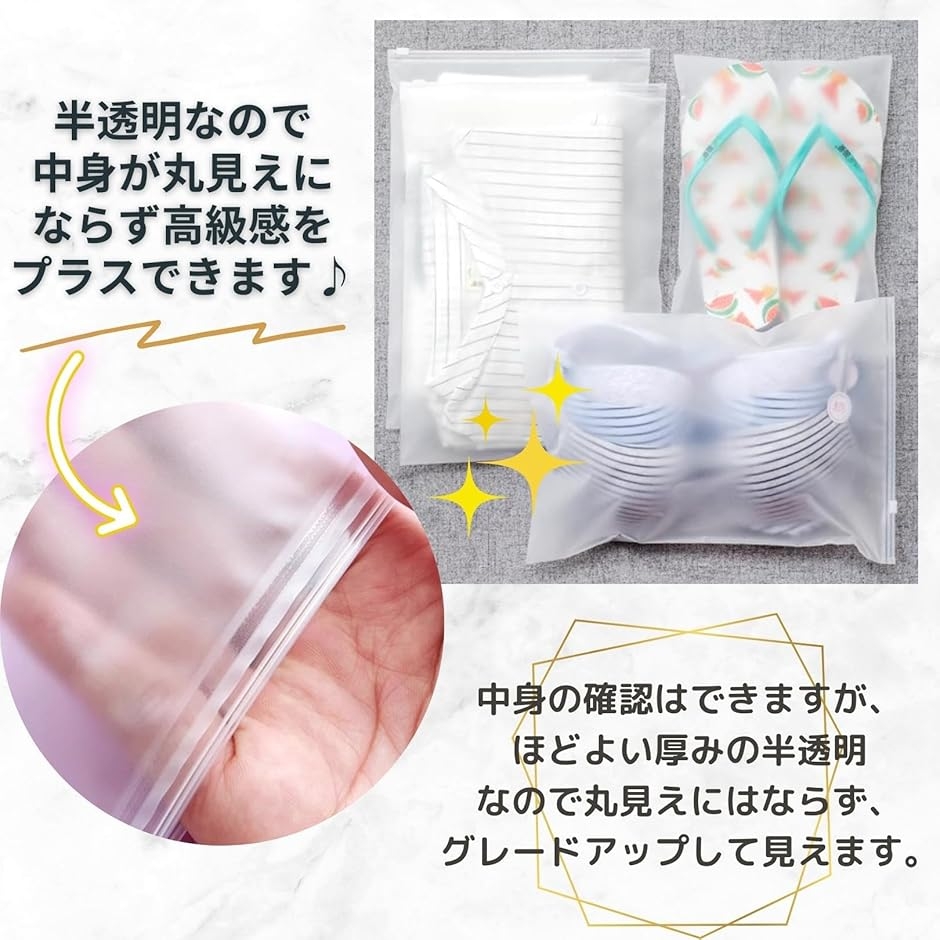 中身の確認はできますが、ほどよい厚みの半透明なので丸見えにはならず、グレードアップして見えます。
