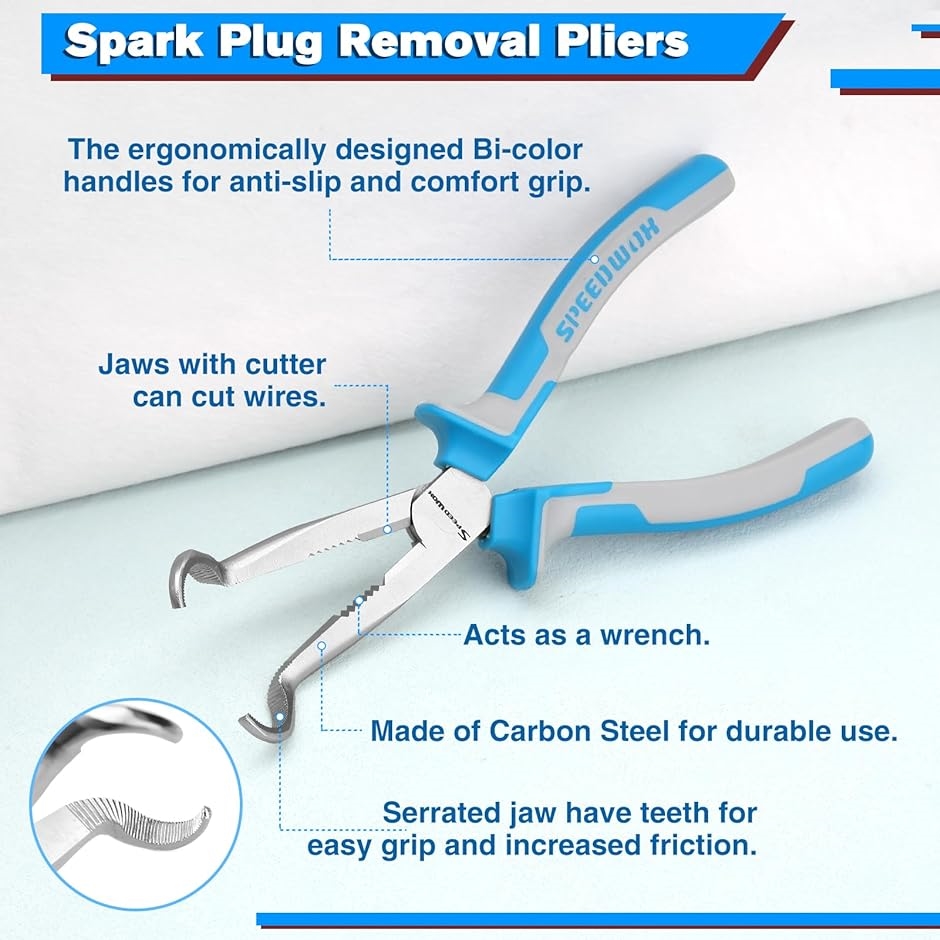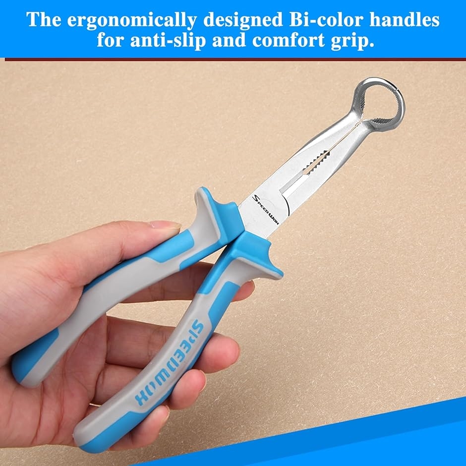 「デザイン」丸い先端部で、ホース、スパークプラグカバー等パイプ状の部品をつかむのに最適です。