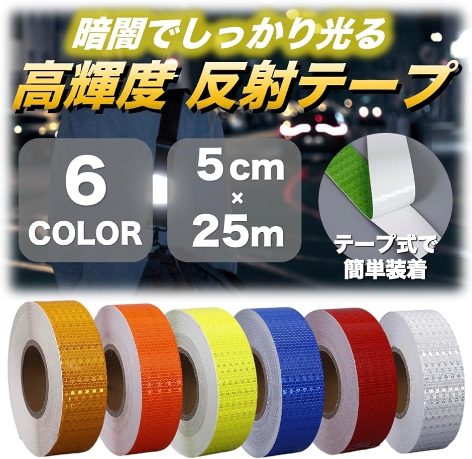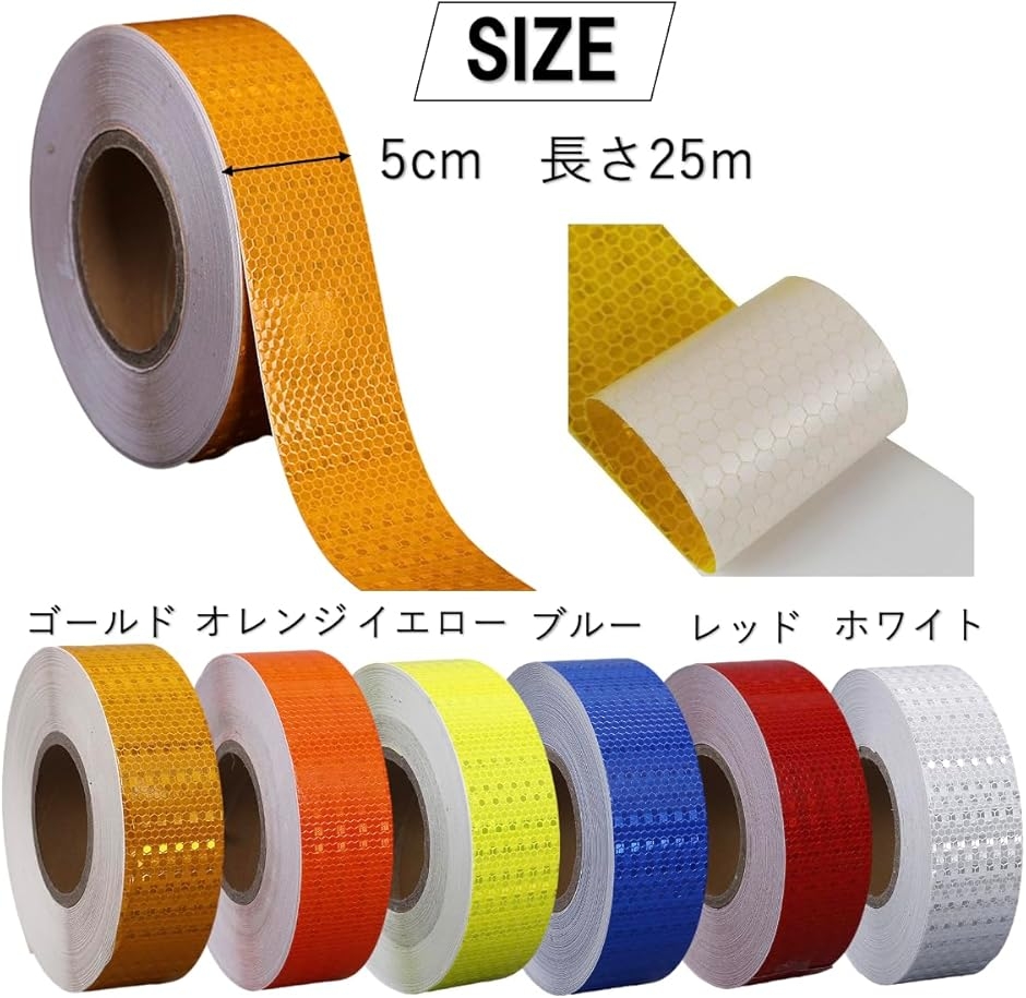 | 商品名 | 超高輝度反射テープ 蛍光反射ステッカー 幅5cm長さ25m 車装飾反射シール 夜間 事故防止 安全標識 黄 |