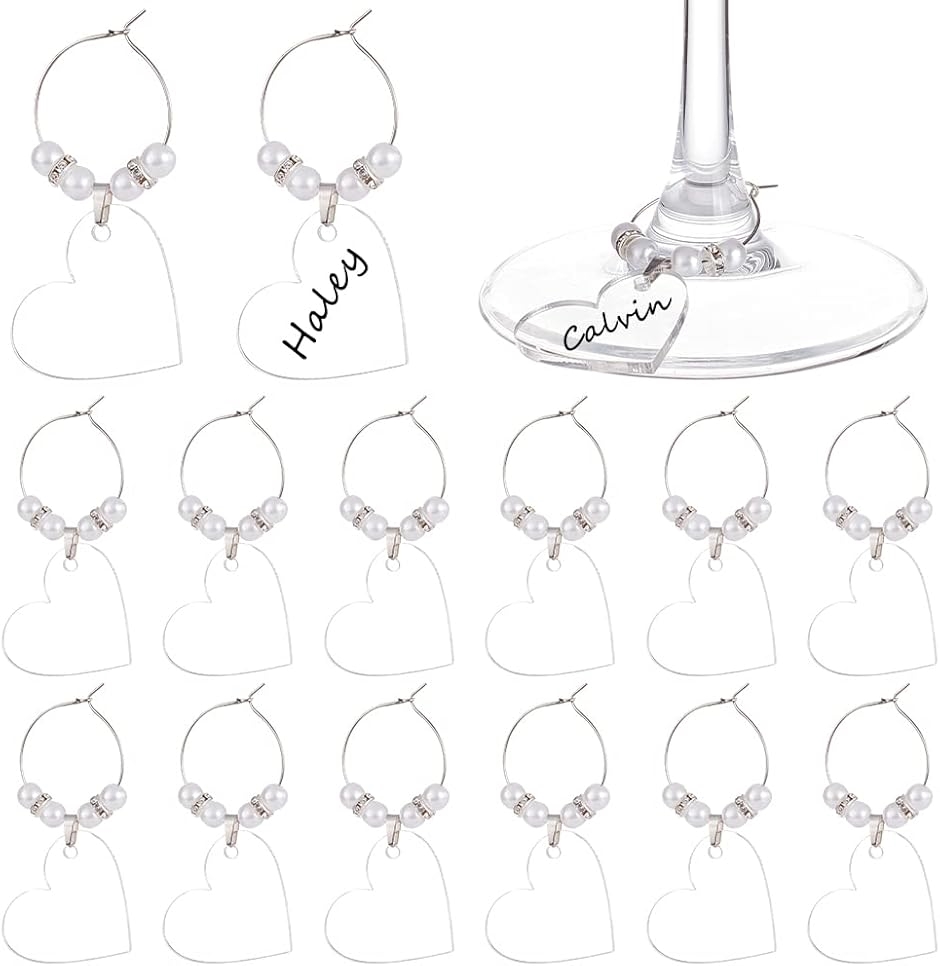| 商品名 | 20個 白 ハート型 クリアワイングラス ネームチャーム アクリル製 真鍮製ワイングラスチャーム付き グラス識別用 ワイングラス装飾用 |