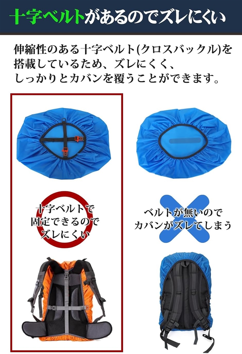 | 商品名 | 十字バックルでズレない リュックカバー 防水 ザックカバー バックアップカバー レインカバー リュック バッグカバー 雨よけ バックカバー 反射板付き 通勤 通学 |