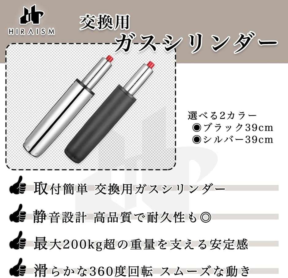 「取付簡単。交換用ガスシリンダー」ほとんどのオフィスチェア、OAチェア、ゲーミングチェア等に適用可能な汎用タイプの交換用ガスシリンダーになります。