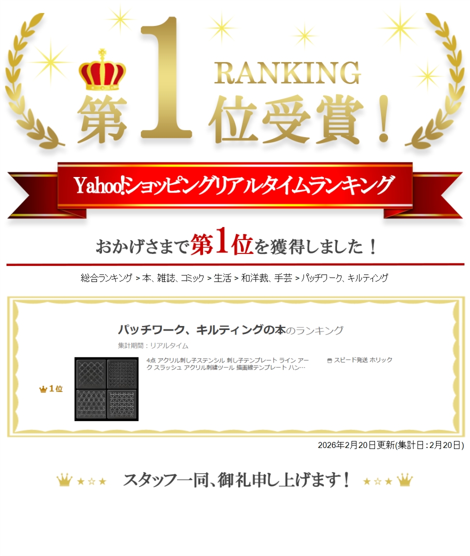 幅広い用途: ステンシルパターンはクラシックで、キルティングや刺繍プロジェクトに最適で、色々な生地や糸の種類にも適しています。