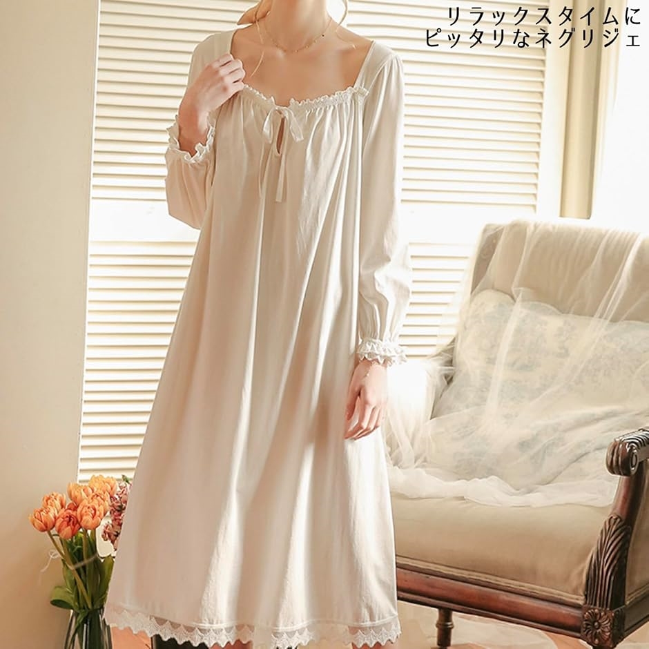 | 商品名 | ネグリジェ ワンピース パジャマ レディース ルームワンピース 長袖 ルームウェア シンプル レース リボン |