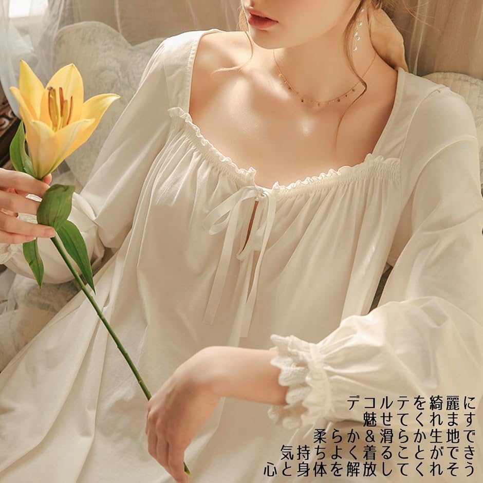 | 商品名 | ネグリジェ ワンピース パジャマ レディース ルームワンピース 長袖 ルームウェア シンプル レース リボン |