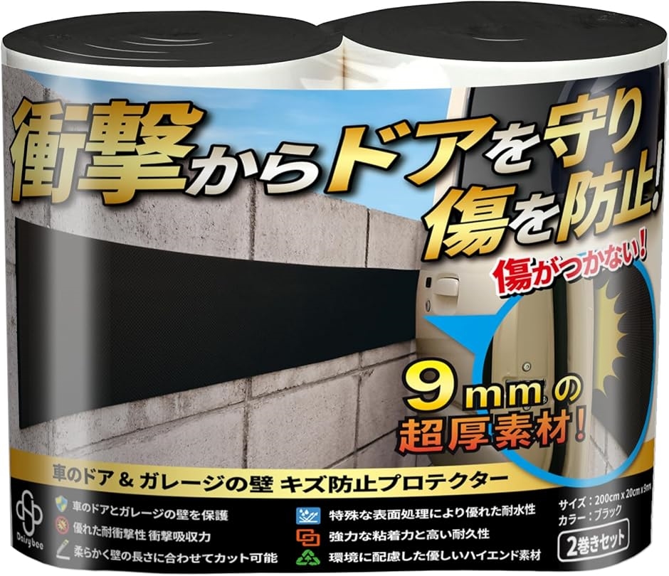 「 9mmの厚さで、耐衝撃性、衝撃吸収性に優れてたクッション材 」 車ドアの開閉時に駐車場の壁にぶつけても衝撃から守り、中程度の激しい衝突によるダメージを防ぎます。