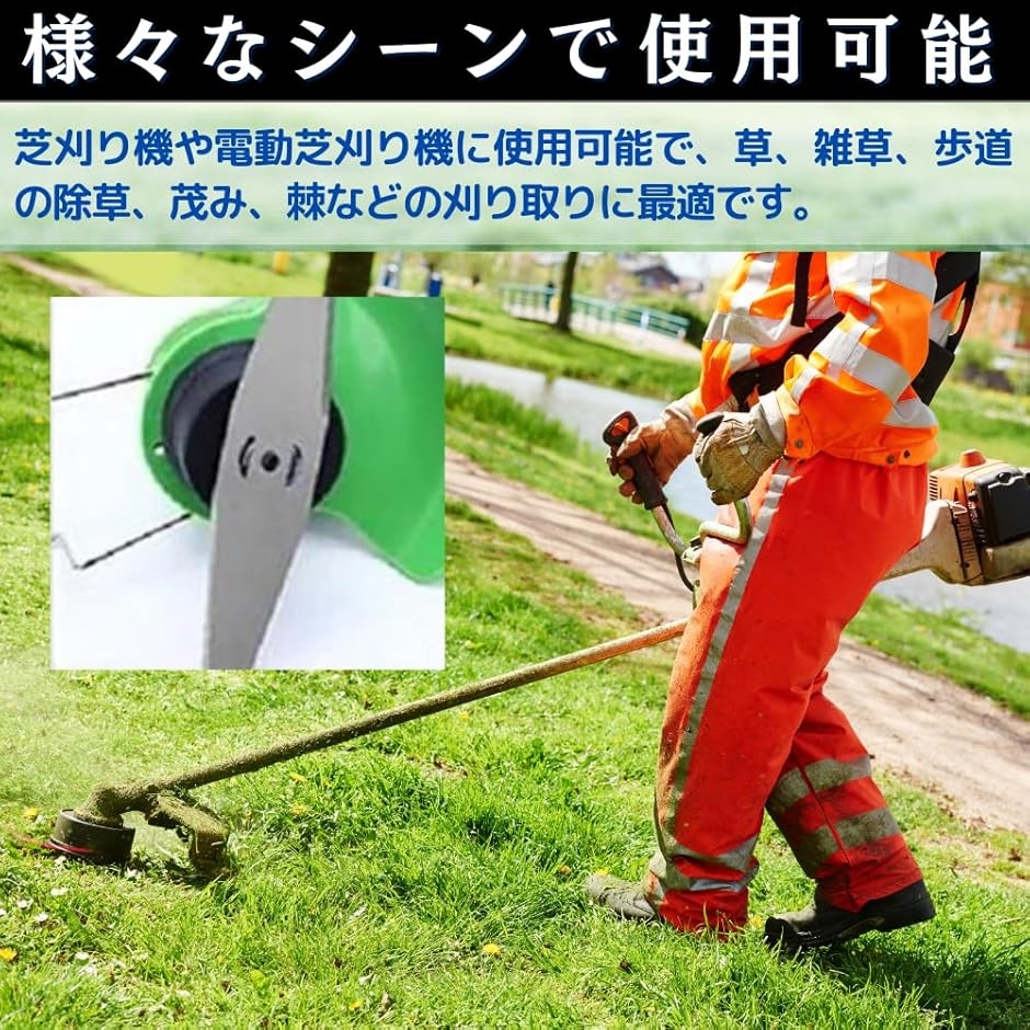 芝刈り機や電動芝刈り機に使用可能で、草、雑草、歩道の除草、茂み、棘などの刈り取りに最適です。