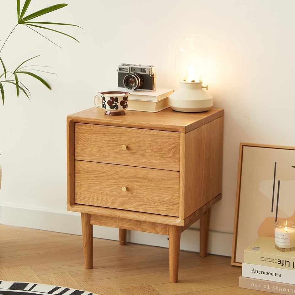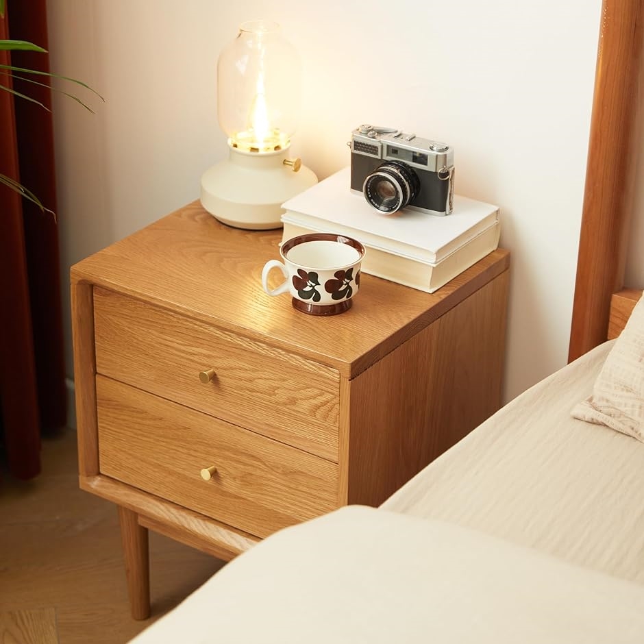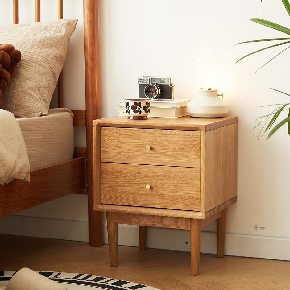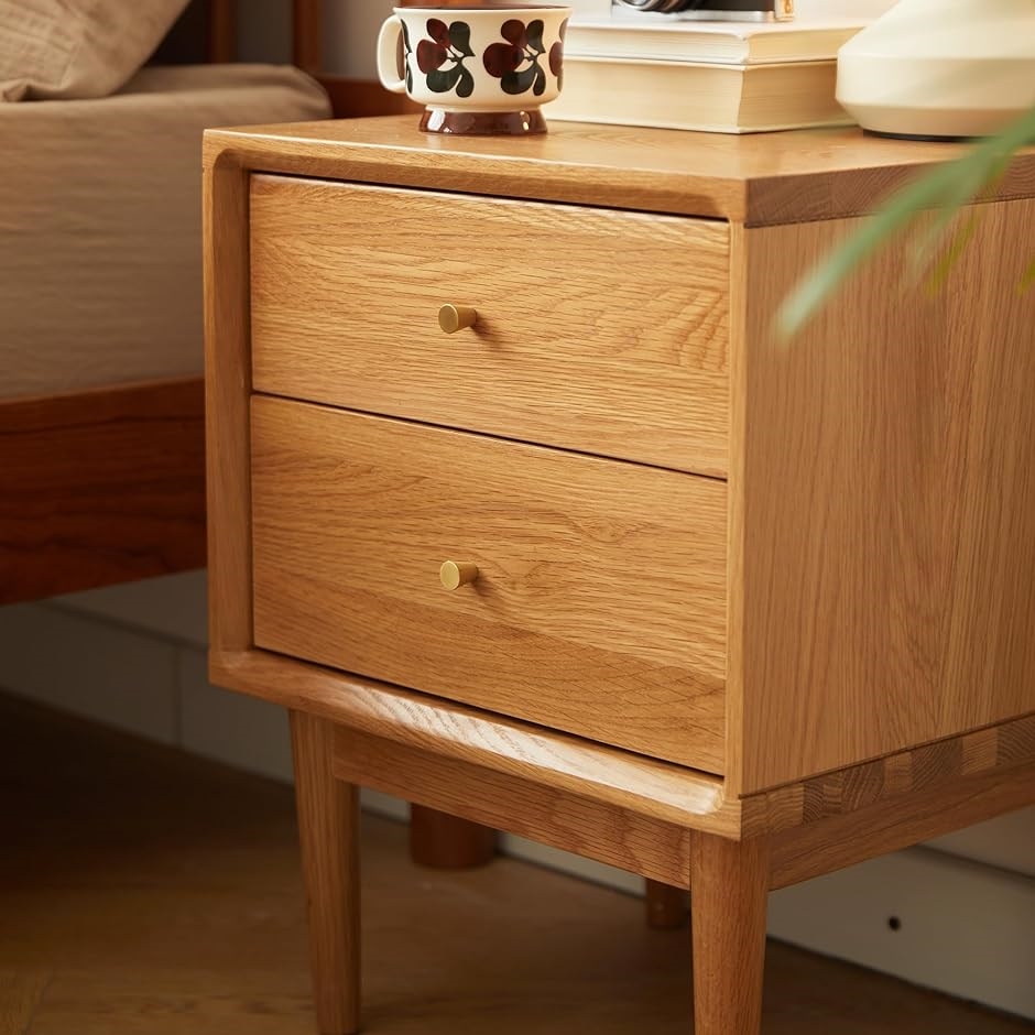 天然のオークとアオギリ無垢材により作られ、ベニヤやMDFで作られたベッドサイドテーブルよりも頑丈で長持ちします。