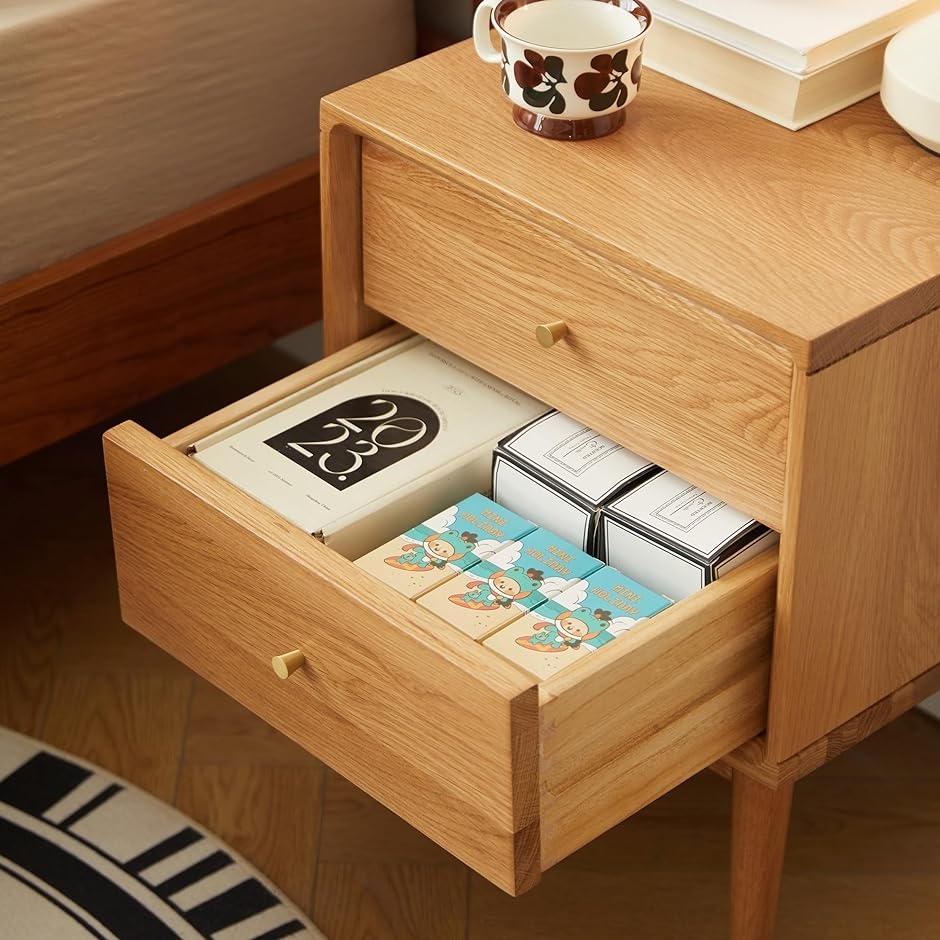 引き出しが2つ付いており、本や雑誌、メガネ、時計、タブレット、ハンドクリームなどベッドサイドにあると便利な小物が十分に収納できます。