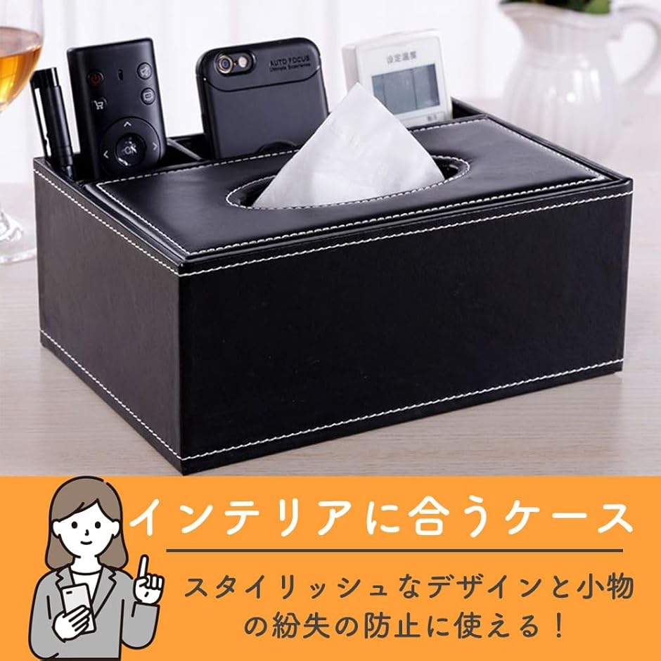 「ティッシュ収納と机の整理整頓の両立」ティッシュかつリモコン、文房具などを収納できる多機能ケースです。