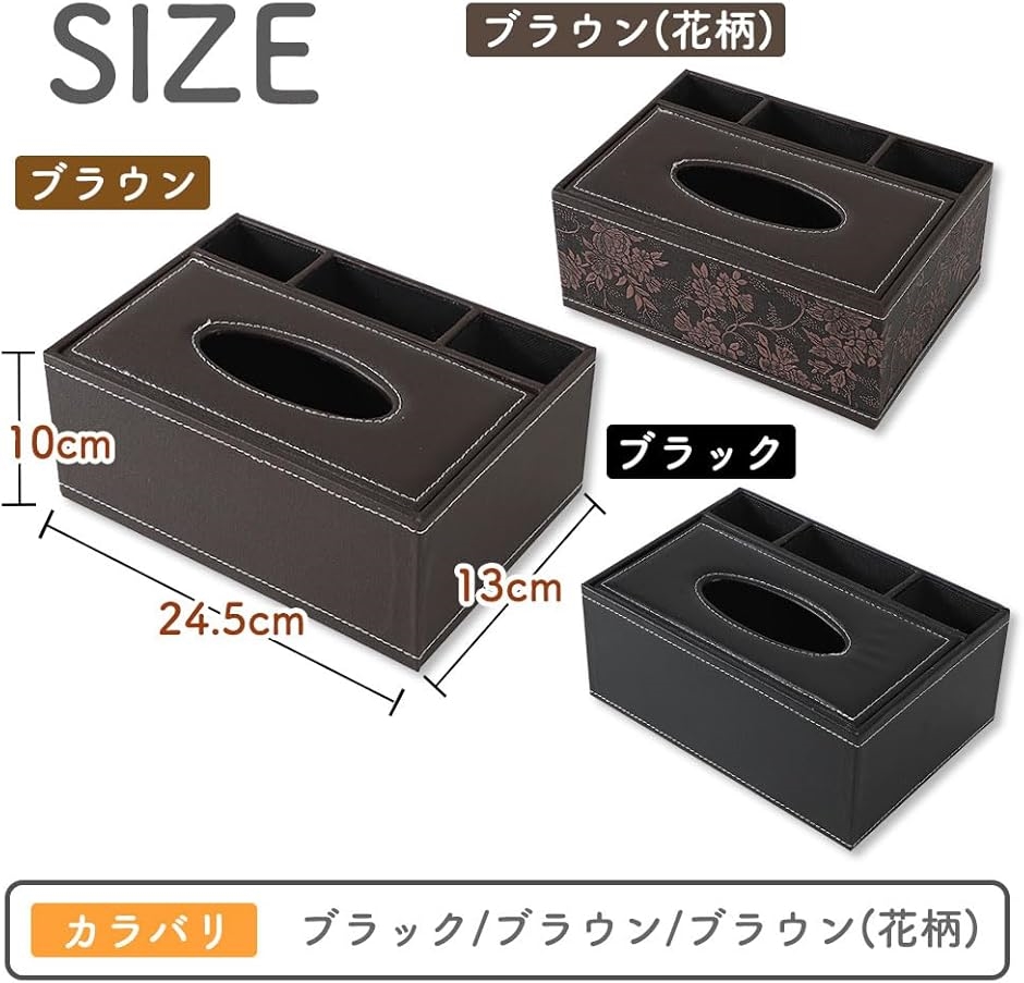 この商品一つでティッシュとリモコン類の収納ケースとなり、机の整理整頓に一役買うアイテムとなります。