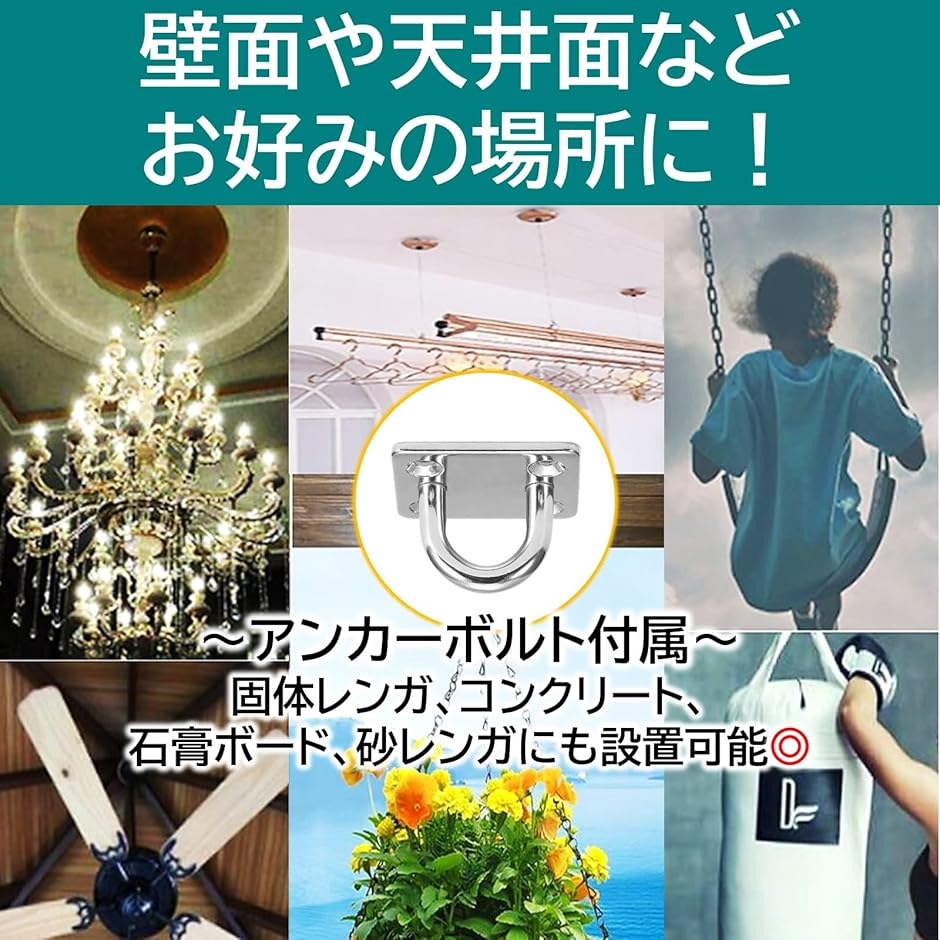 | 商品名 | アイプレート 天井 フック パッドアイ U型 ステンレス 壁 ネジ アンカー付き 4個セット シルバー |