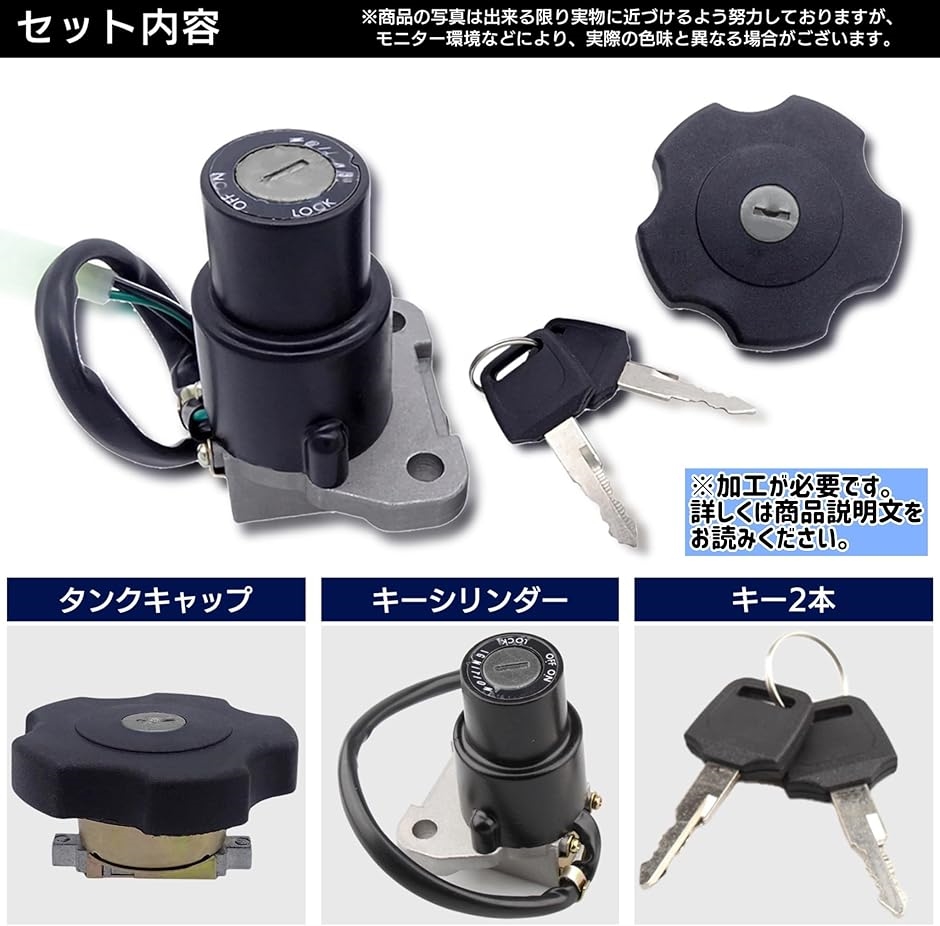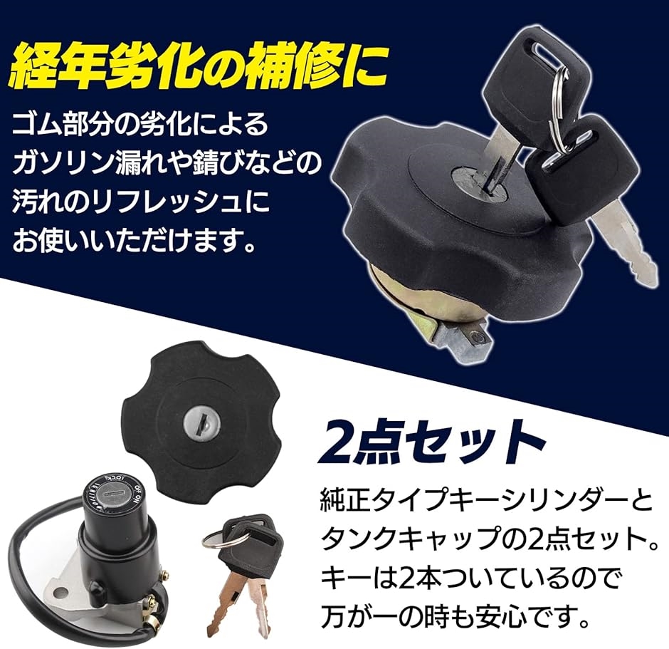 「純正仕様」純正タイプのキーシリンダーとタンクキャップのセットで給油口の大きさが約40mmのタンクに適合します。