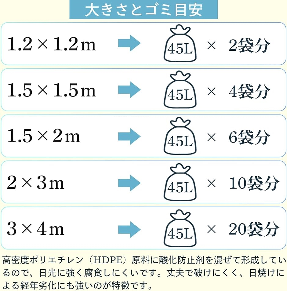 周囲におもりロープが入り、ガード力が強く、風の強い日にも風に飛ばされにくいです。