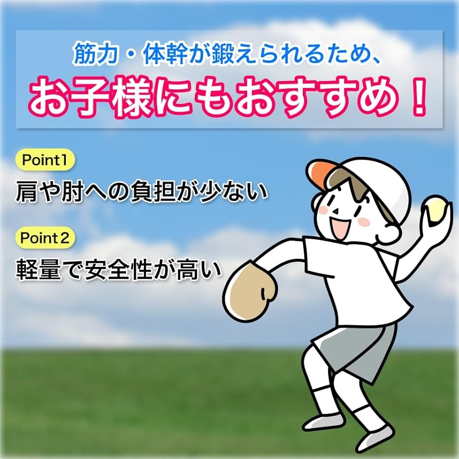 軽量なので安全性が高く、お子様が遊びながら野球やソフトボール等の正しい投げ方のフォームを自然に身に付けられます。