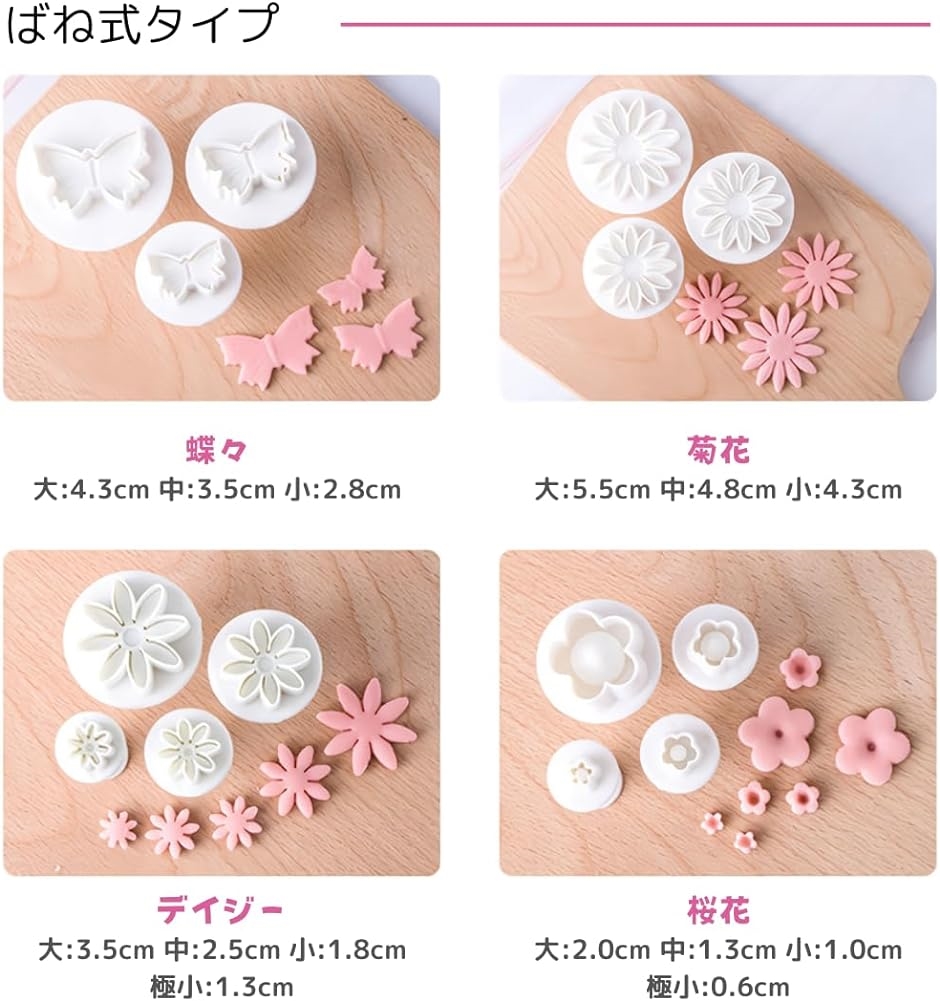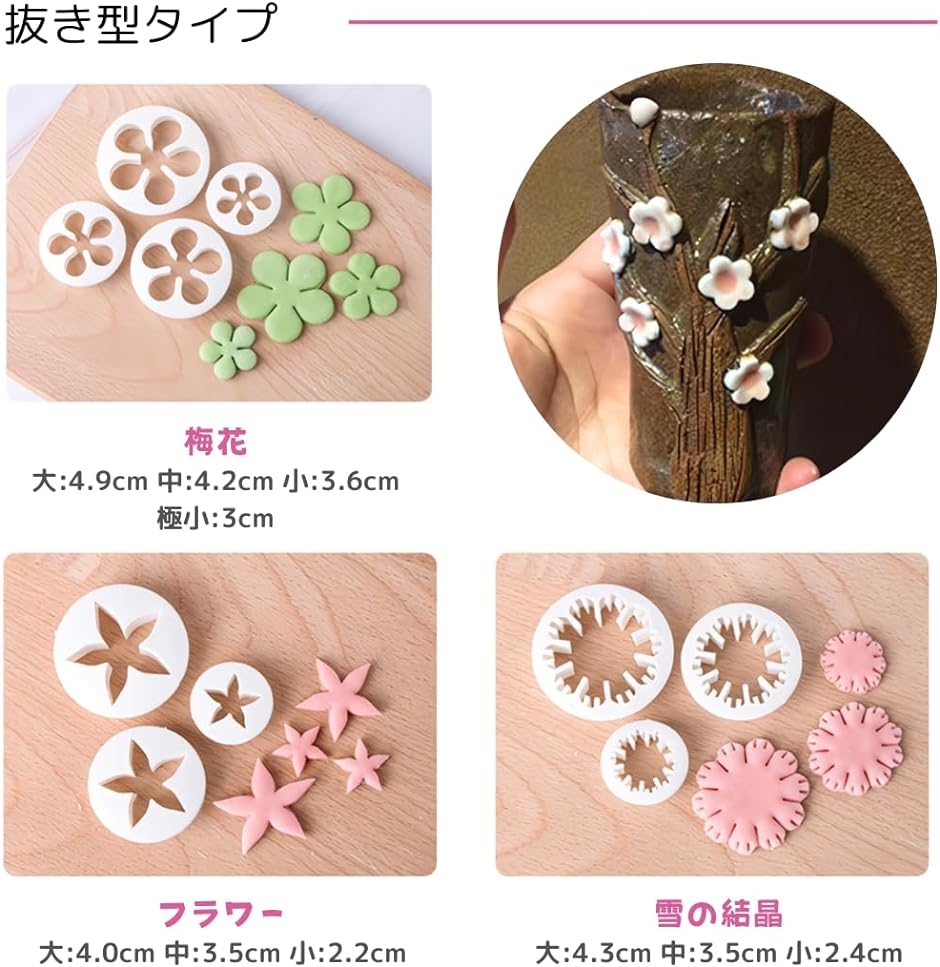 梅花:4種 星:3種 菊花:3種 マーガレット:3種 蝶:3種 ハート:3種 桜花:4種 リーフ:3種 小花:4種 リトルスター:3種