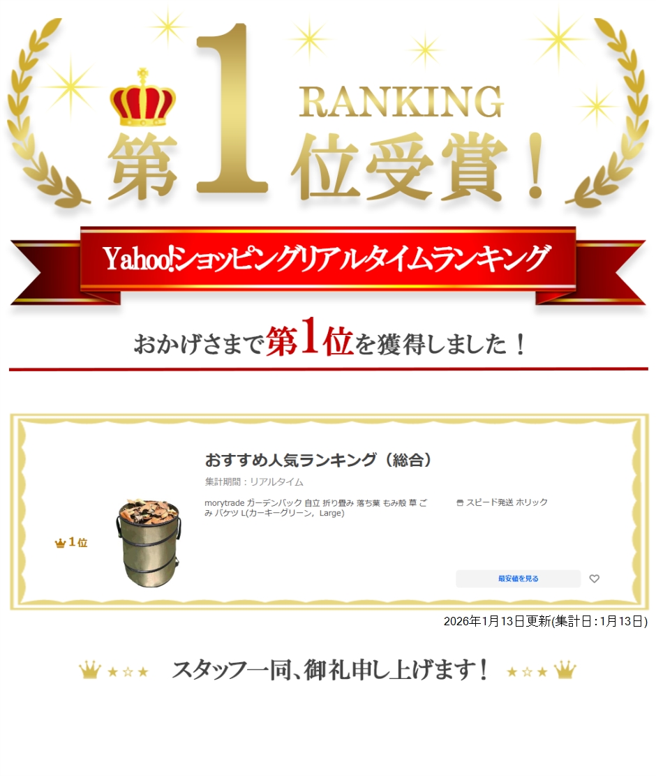 | 商品名 | morytrade ガーデンバック 自立 折り畳み 落ち葉 もみ殻 草 ごみ バケツ L |