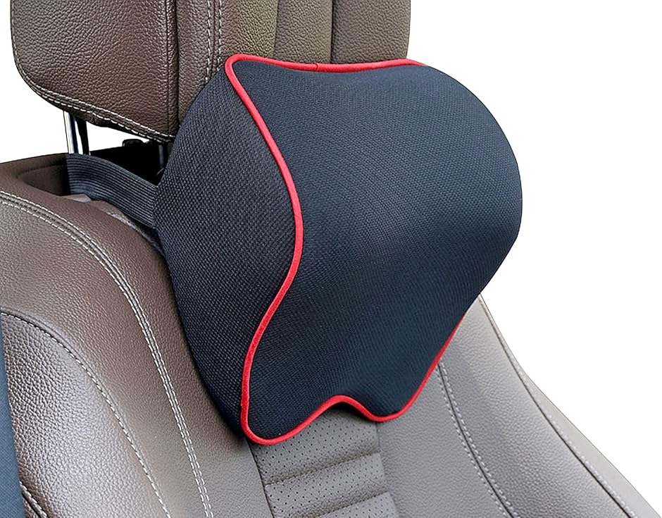 | 商品名 | ネックパッド ヘッドレスト ネックピロー 腰椎サポート 低反発 ネッククッション 黒x赤ステッチ |
