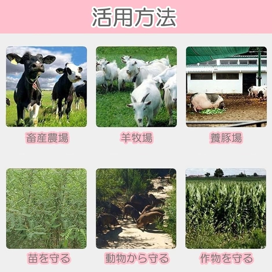 電気柵とは、田畑や牧場の周りに電気を通した柵線を設置し、動物が電気柵に触れた際にショックを与え野生動物の侵入又は家畜を外に逃がさない役割が有ります。