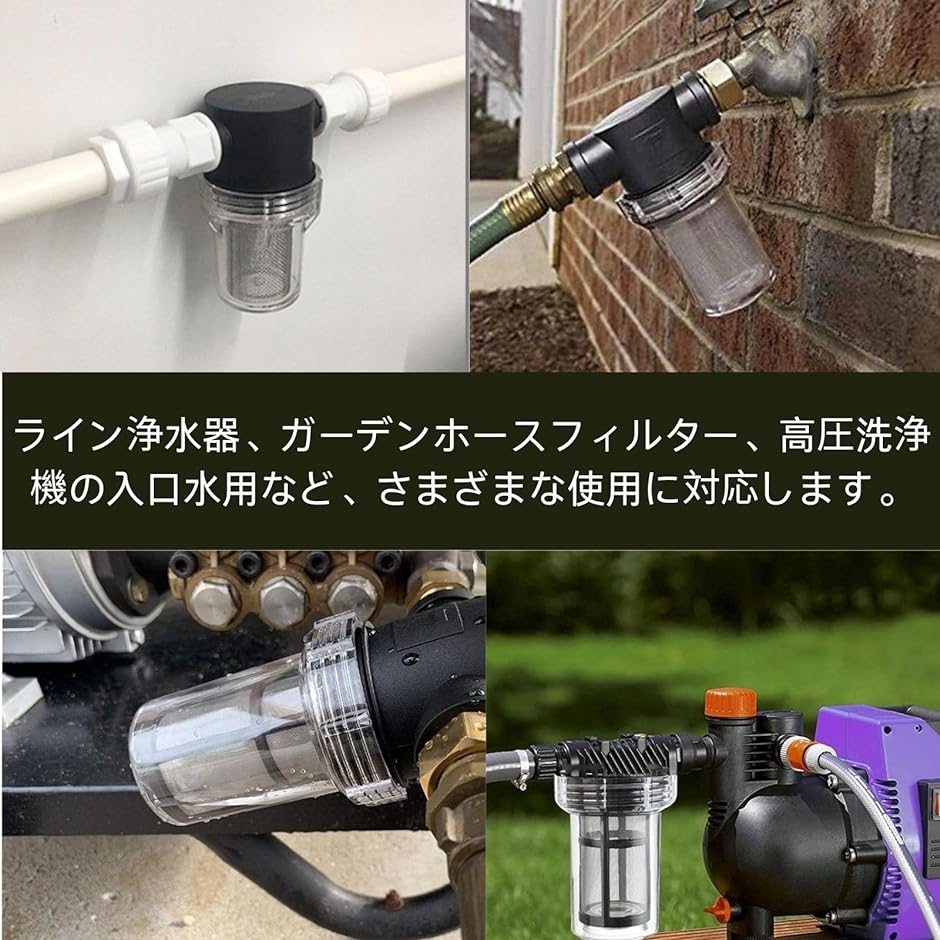 3. 「幅広い用途」:園芸用ホースやプレッシャーウォッシャーに使用することで、水中の異物をフィルタリングし、プレッシャーウォッシャーポンプなどの部品を保護します。