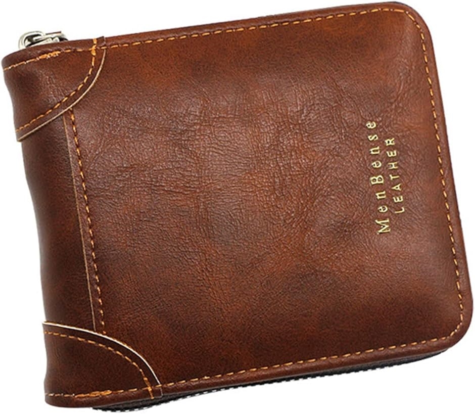 | 商品名 | 財布 メンズ コンパクト ラウンドファスナー ウォレット PUレザー 折りたたみ 2つ折り ブラウン |