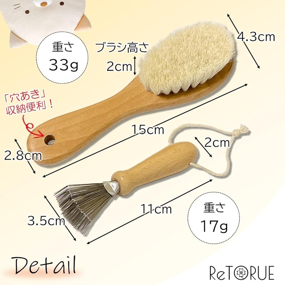「2種のブラシでプロ級ケア」ソフトな羊毛ブラシはホコリ・汚れ除去や仕上げに最適。
