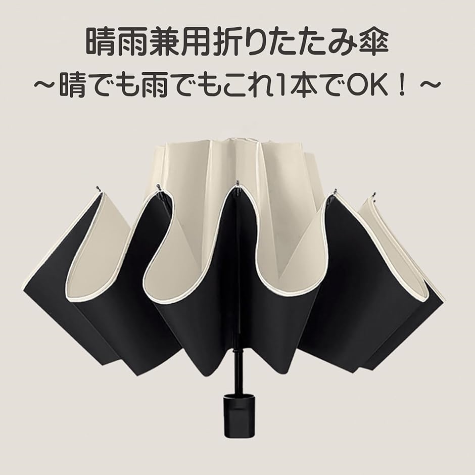| 商品名 | 折りたたみ傘 日傘 晴雨兼用 UVカット ワンタッチ 自動開閉 12本骨 遮光 耐風 撥水 大きい UPF50+ ブラック |
