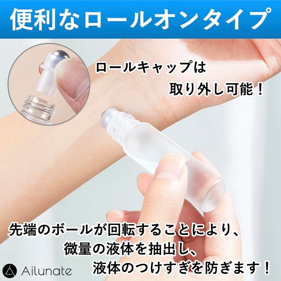 「便利なロールオンタイプ」ロールキャップは取り外し可能で、香水やアロマ、コスメの保存容器としてもお使い頂けます。