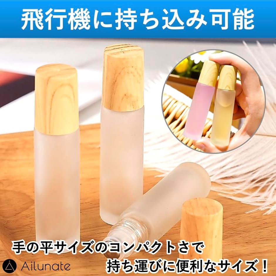 「おしゃれな木目調デザイン」蓋が木目調になった持ち運びサイズのロールオンボトルです。手の平サイズのコンパクトさで持ち運びに便利なサイズ。飛行機の機内持ち込みも可能で、旅行や出張でも嵩張らないサイズ感です。