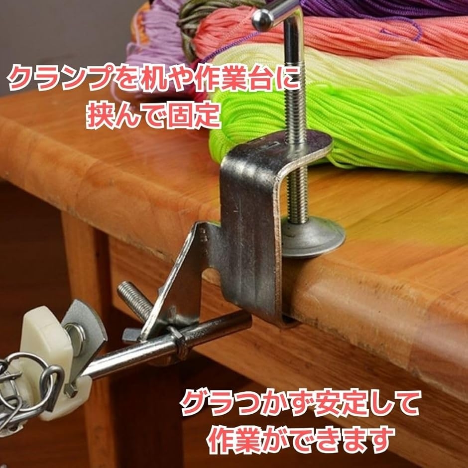 「誰でも使用できる」かせくり器はテーブルや机の端に金具を固定し使用できます。
