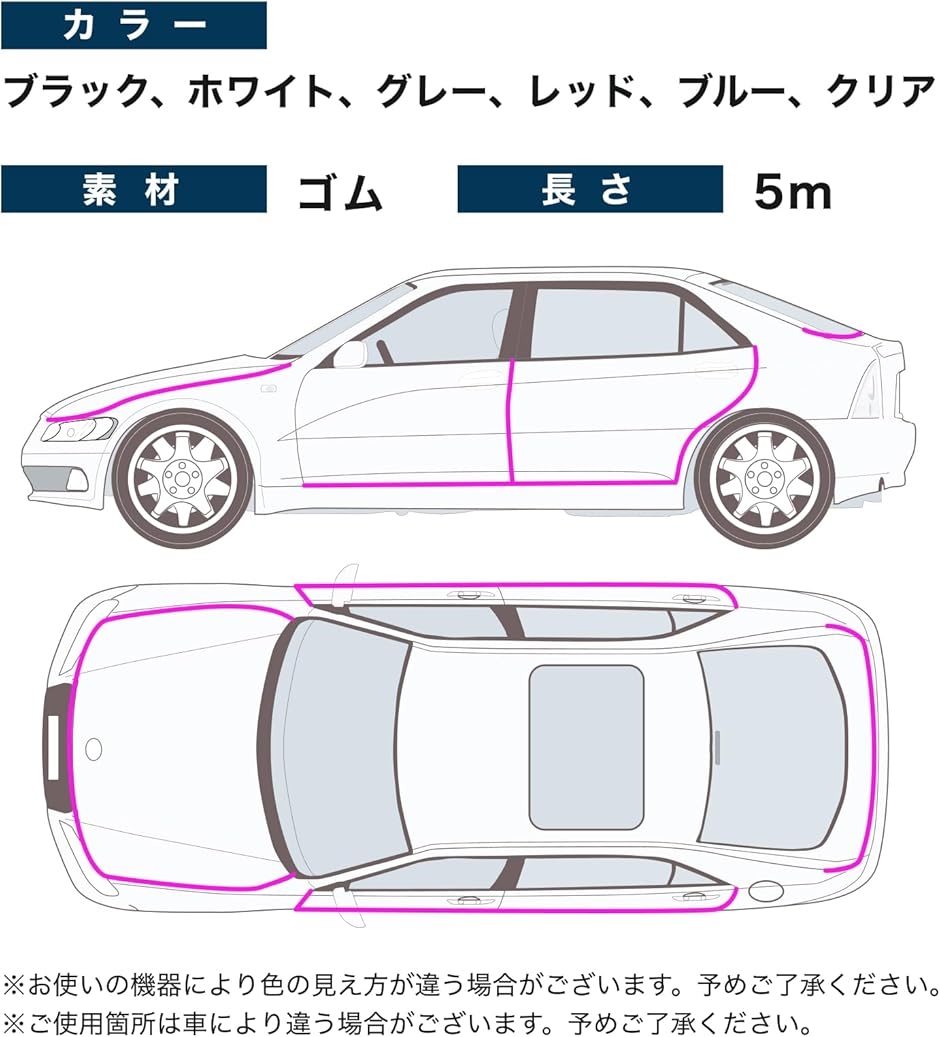 5mの長さで各ドアに適用可能、カーパーツとしての魅力を引き立てます。