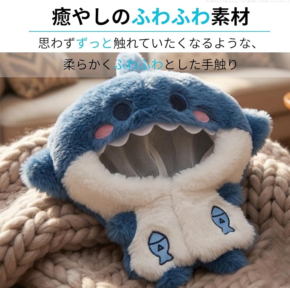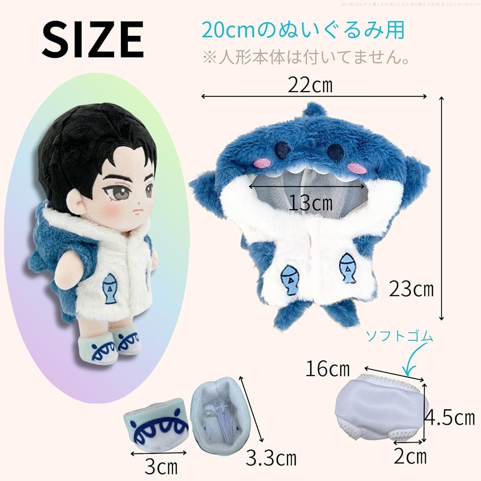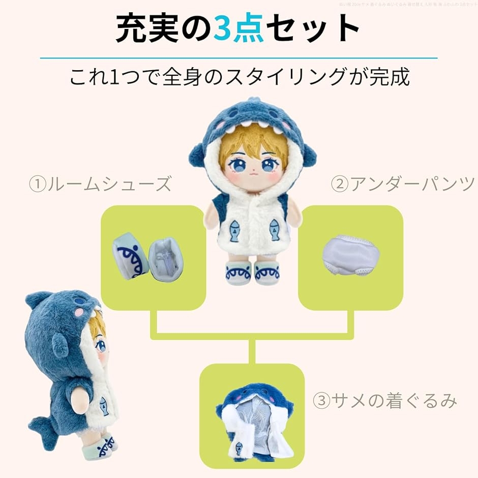 | 商品名 | ぬい服 20cm サメ 着ぐるみ ぬいぐるみ 着せ替え 人形 魚 海 ふわふわ 3点セット |