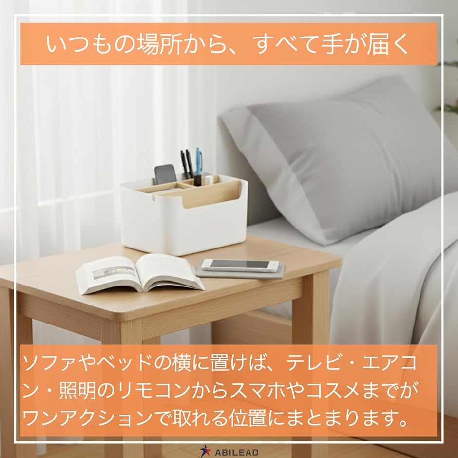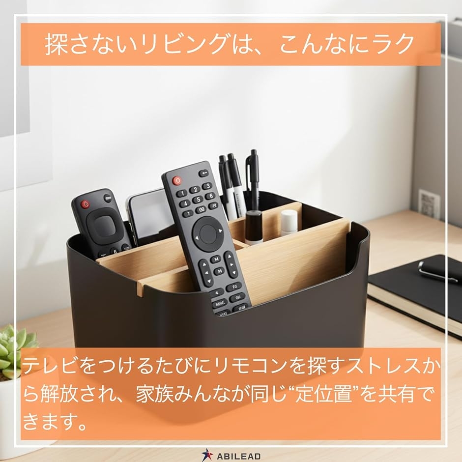 「用途と特徴」テレビ周りのリモコンラックとしてはもちろん、在宅ワークの卓上収納やドレッサーの小物入れ、ペン立て、コスメ整理まで幅広く活躍します。