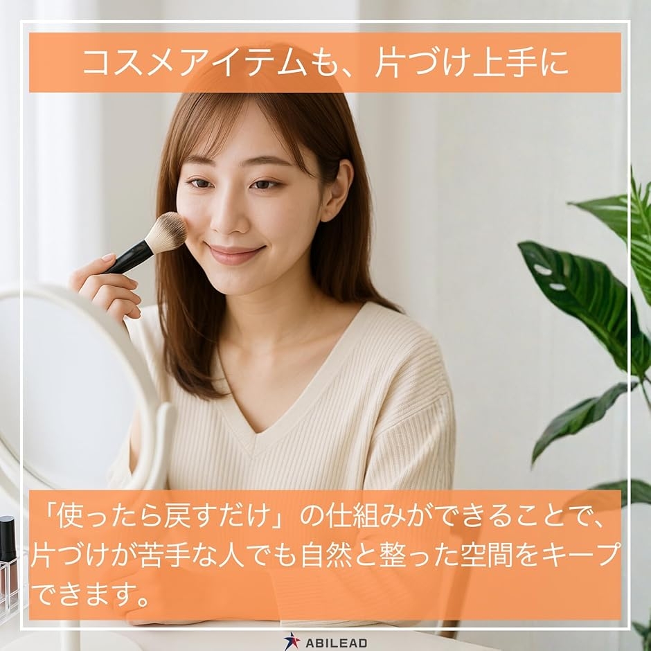 一本化された箱に詰めるのではなく、細かく区切られた小物入れとして“戻す位置”が自然と決まるため、散らかりの再発を防ぎやすくなります。