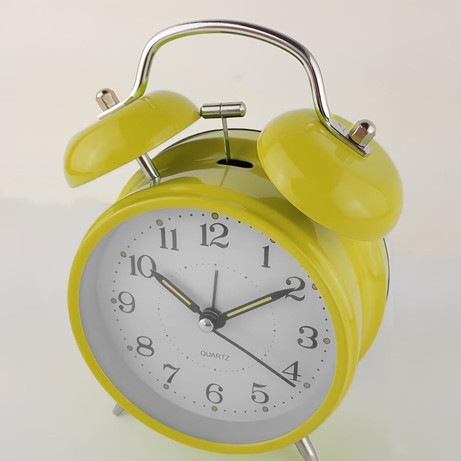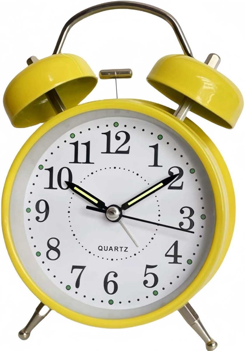 この爆音めざまし時計は連続秒針とアナログ表示によって正確な時間を示します。