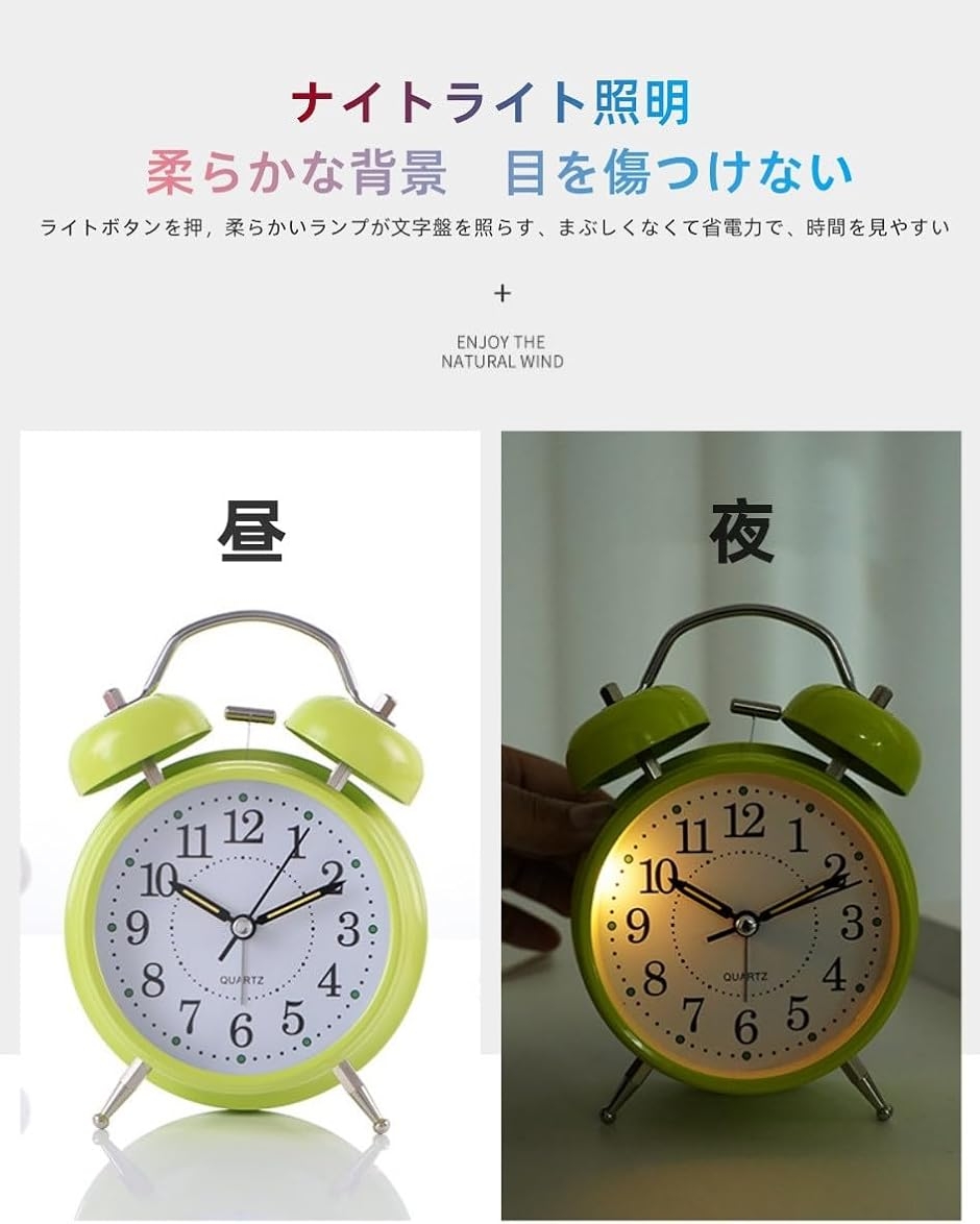「目覚まし 連続秒針と静音機能」この目覚し時計は、良質な睡眠を保つことができ、どんな人でも快適に眠ることができます。