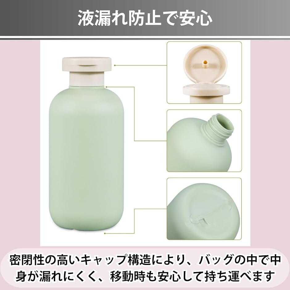「液漏れ防止で安心」 密閉性の高いキャップ構造により、バッグの中で中身が漏れにくく、移動時も安心して持ち運べます。