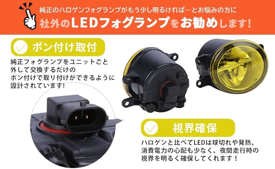 | 商品名 | 互換品トヨタ 用 30系 イエロー 黄色 LED フォグ ランプ ユニット 汎用 左右 セット プリウス 40 プリウスα 10 アクア 等 後付 社外品 ドレスアップ カスタム パーツ |