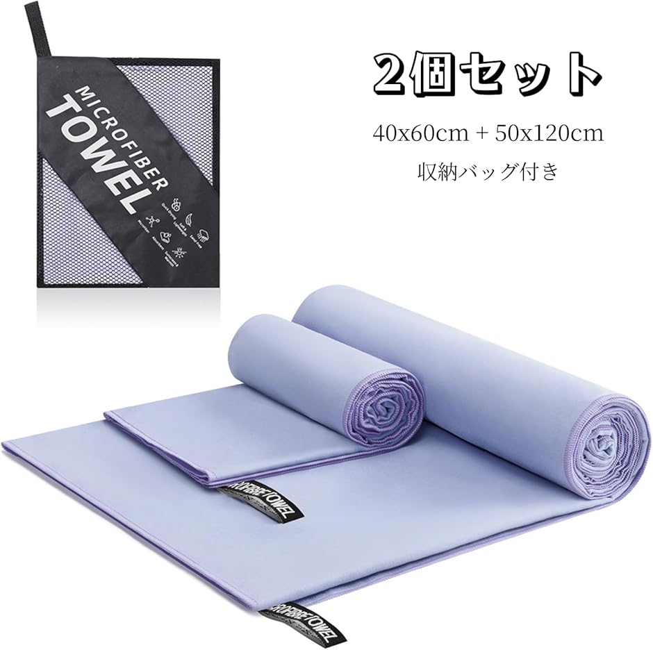 「独立した収納バッグ」:この速乾タオルには3 色・2個セット(40x60cm + 50x120cm),各タオルには収納ボックスが付いています。