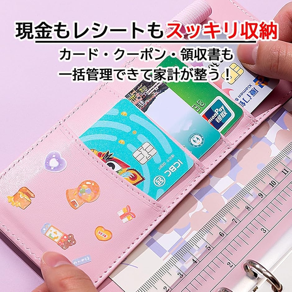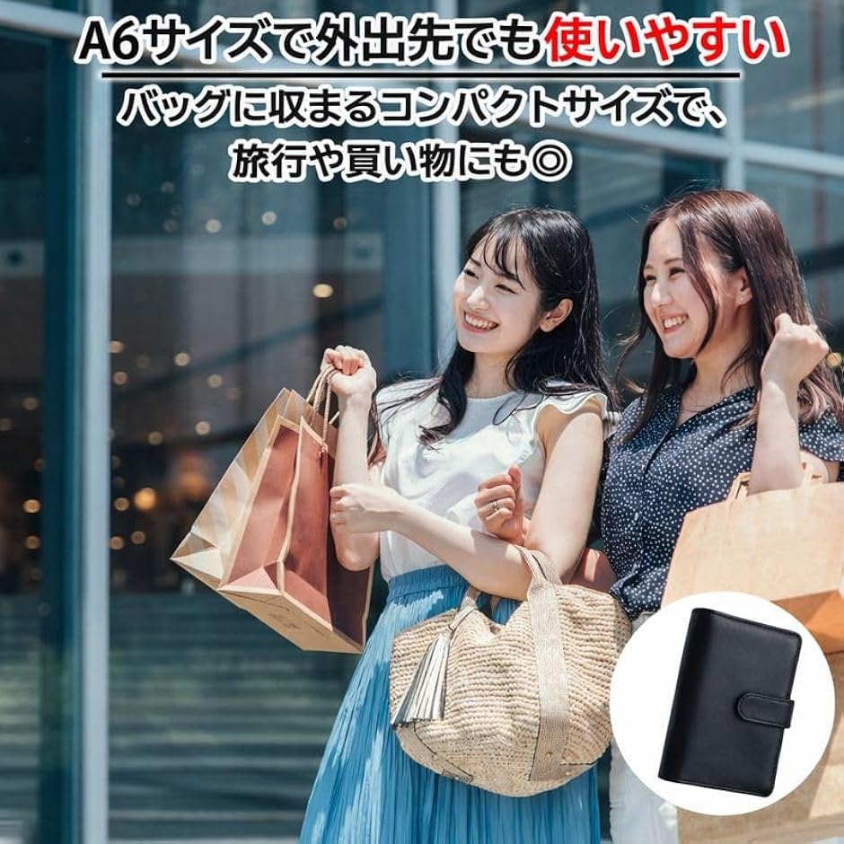 「コンパクトなA6サイズで持ち運び便利」 小さなバッグにも入るA6サイズだから、外出先での管理や旅行時の予算分けにも最適。