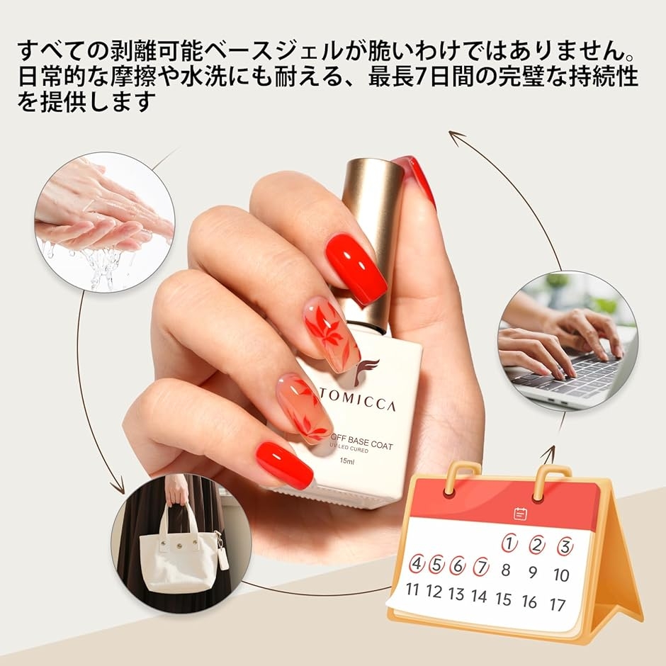 TOMICCA剥がせるジェルネイル ベースを使用すると、リムーバー不要。