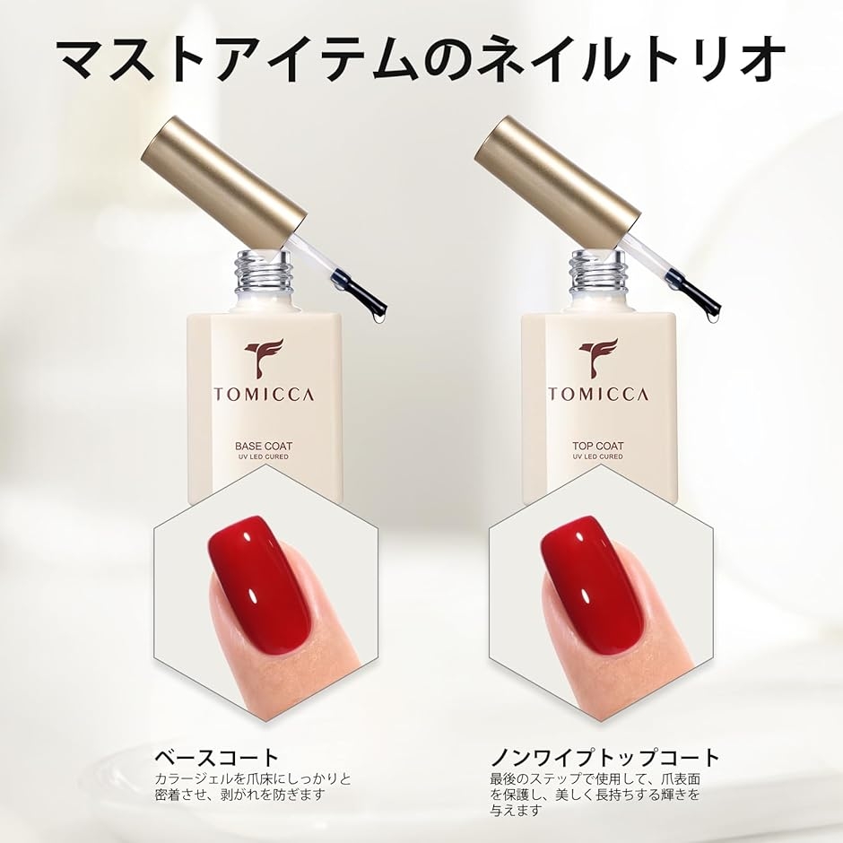 TOMICCA ジェルネイル トップコート ベースコート15ml 2本セット ノンワイプ 拭き取り不要