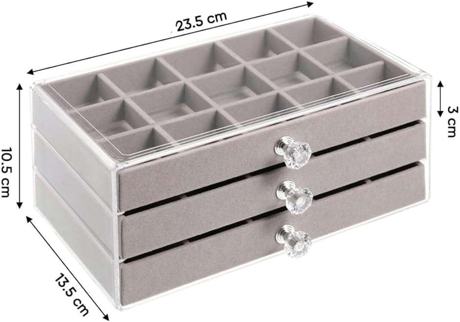 | 商品名 | アクセサリーケース 23.5x15x11cm 3段引き出し式 ディスプレイケース ジュエリーボックス 大容量 45区画 コンパクトサイズ ディスプレイ収納 アクセサリー保護 |