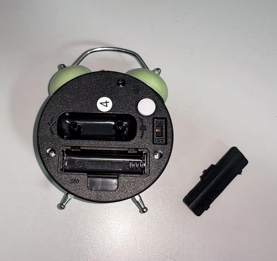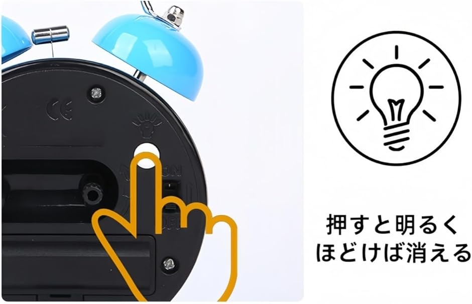 うるさい 爆音 振動 目覚ましの裏側には、常夜灯のボタン以外にも、時間調整やアラームのスイッチがあります。
